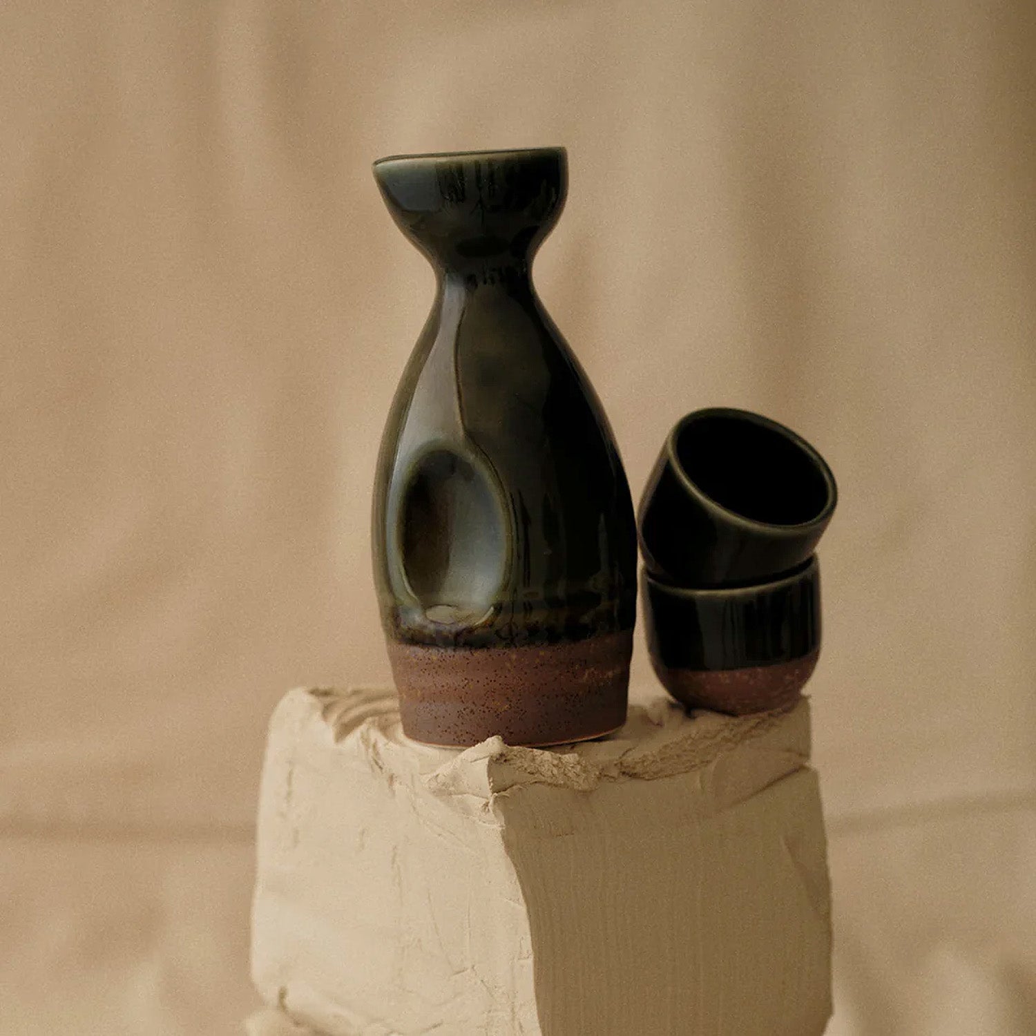 Crafted in Japan, this set includes a saké pourer and two little cups. Use it for serving your favourite sake at the table or for any libation you desire. You can also use the cups for green tea and the pourer as a small vase.