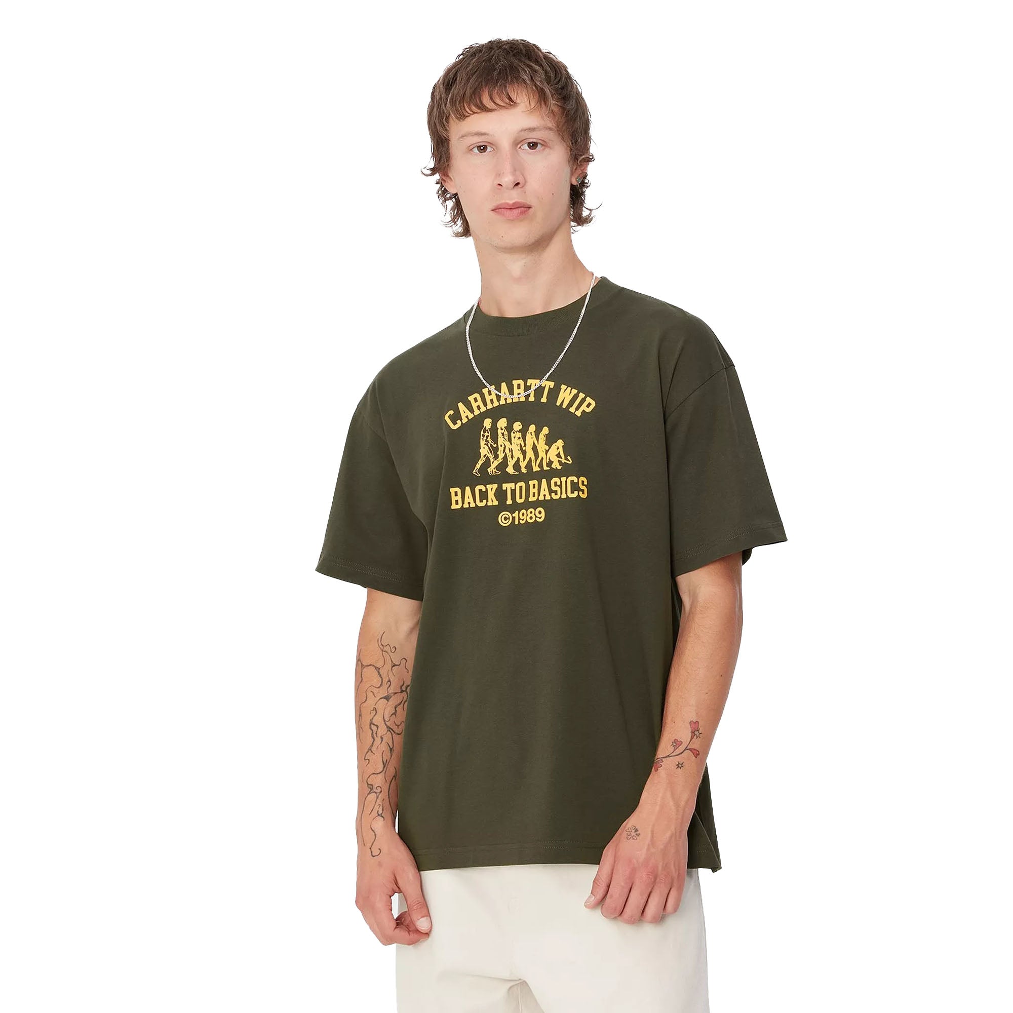 The Carhartt WIP Basics T-Shirt is woven from midweight organic cotton jersey in a loose fit. A graphic print appears on the chest.