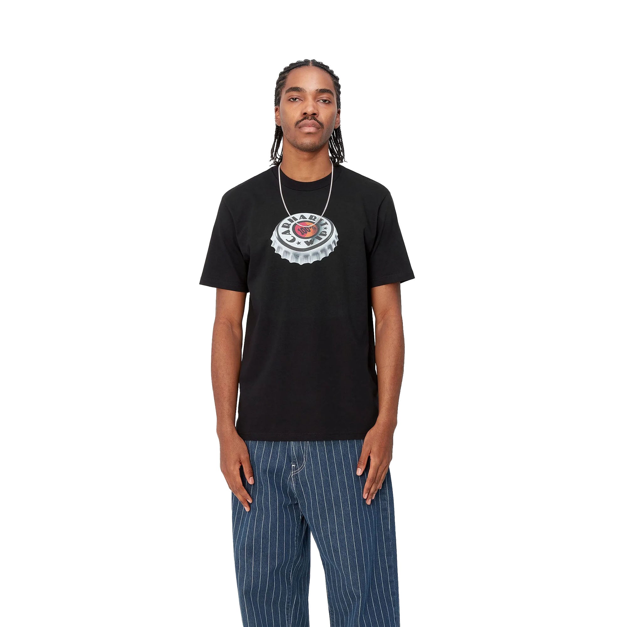 The Carhartt WIP Bottle Cap T-Shirt is woven from lightweight organic cotton jersey in a regular fit. A graphic print appears on the chest.