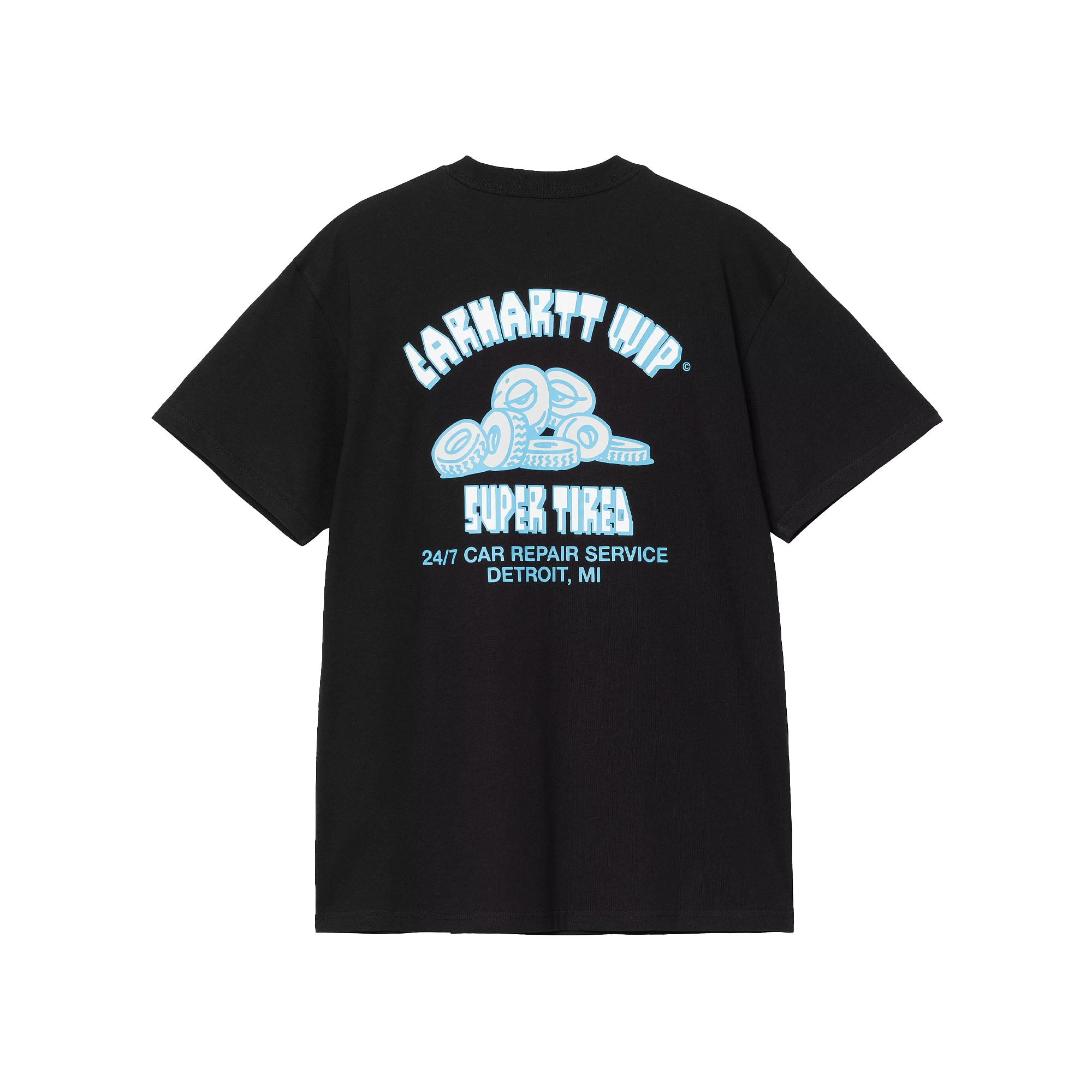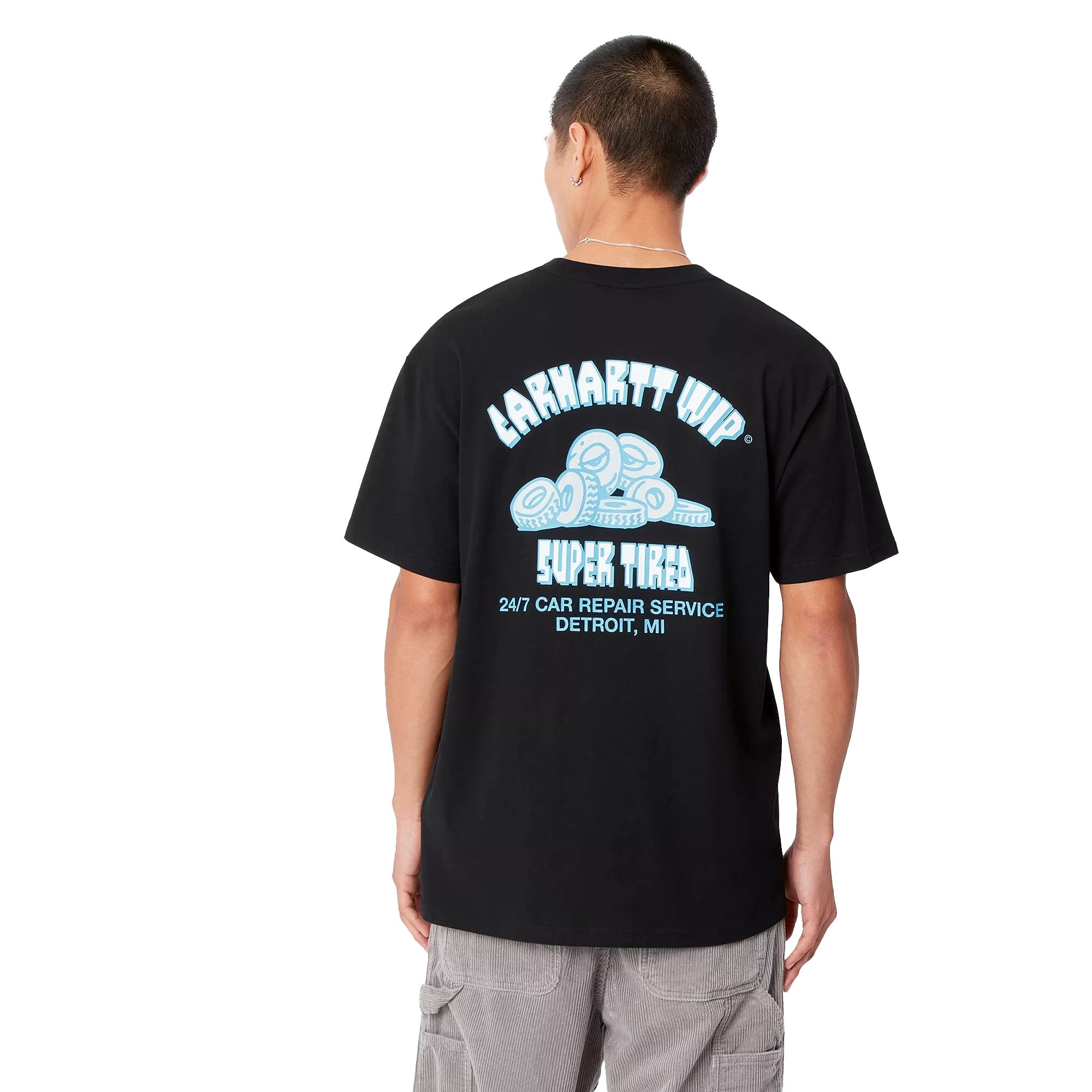 The Carhartt WIP Super Tired T-Shirt is made from lightweight cotton jersey in a loose fit. Graphic prints appear on the chest and back.