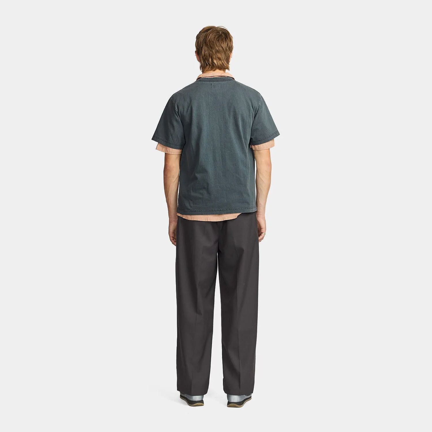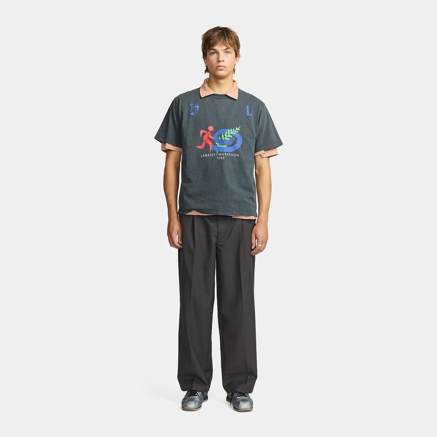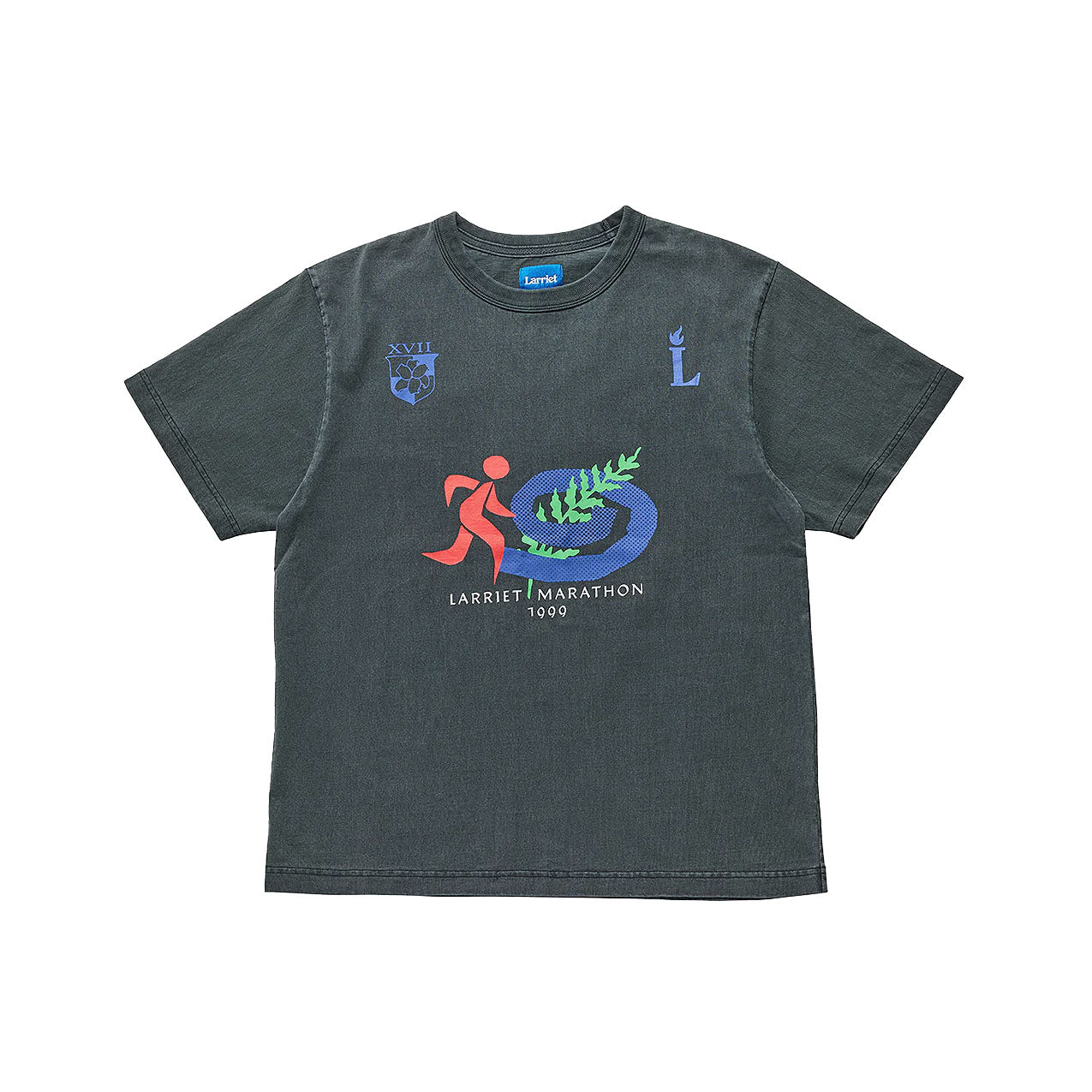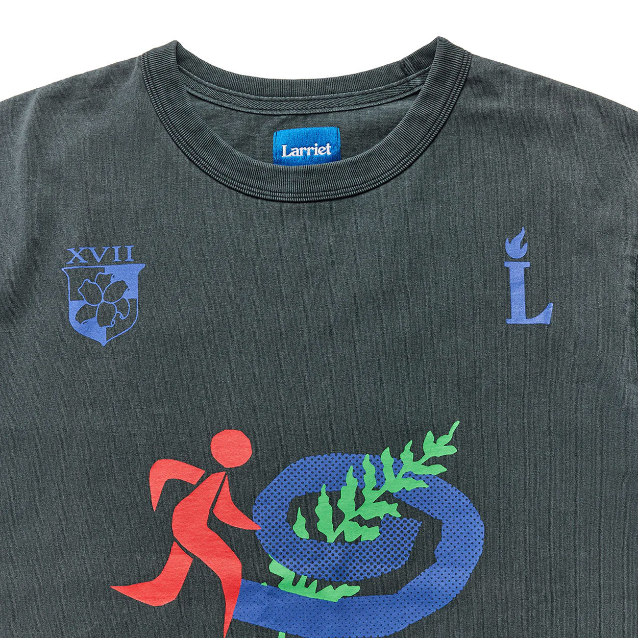 The Larriet Men's Skelton T-Shirt is a heavyweight t-shirt made from 100% cotton jersey, featuring a chest print. The fabric is dyed for a distinctive, aged appearance. This classic, relaxed-fit t-shirt is built to last, crafted from durable jersey and pre-shrunk to maintain its shape. It features twin-needle stitched sleeves and hem, along with shoulder-to-shoulder interior neck taping.
